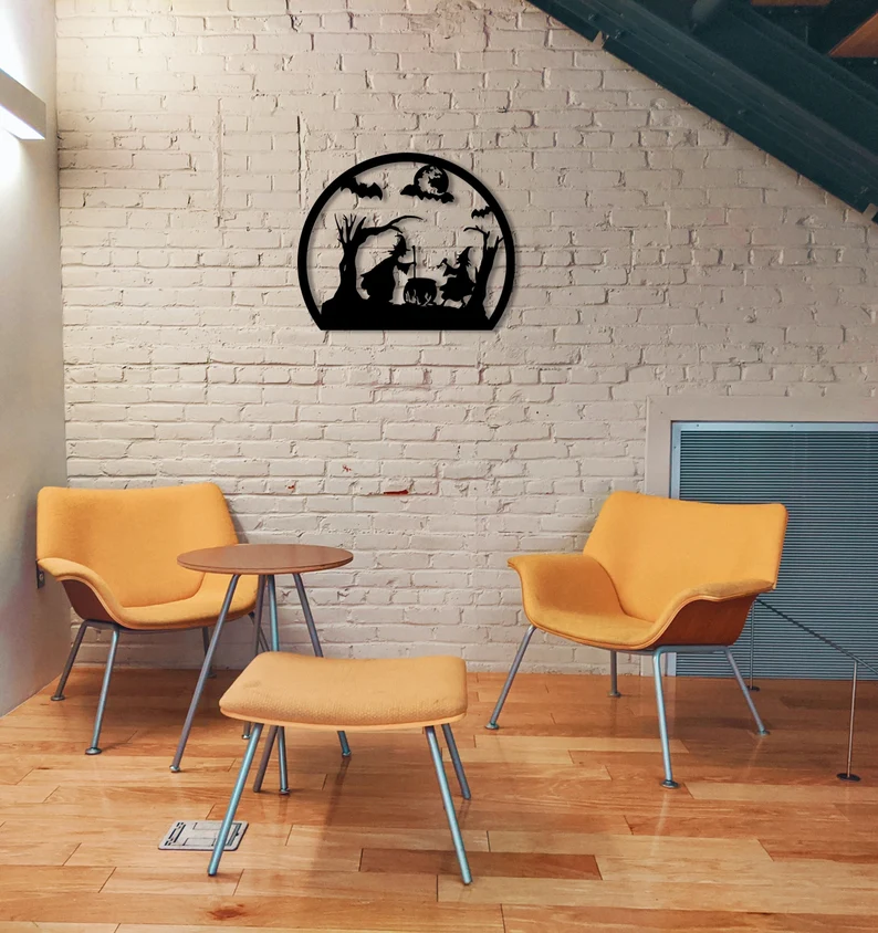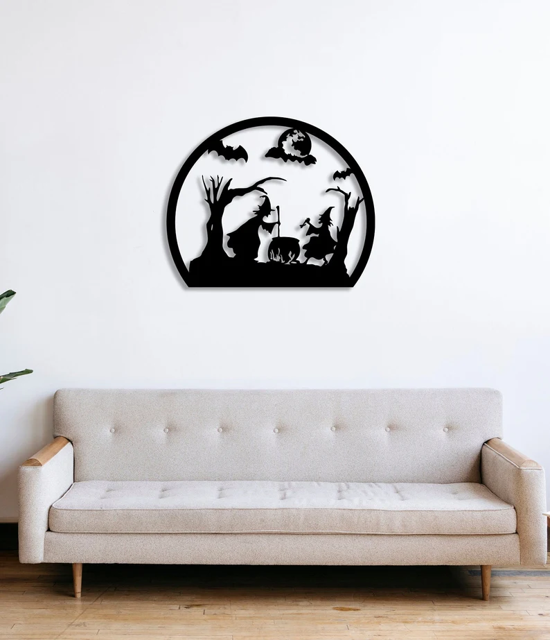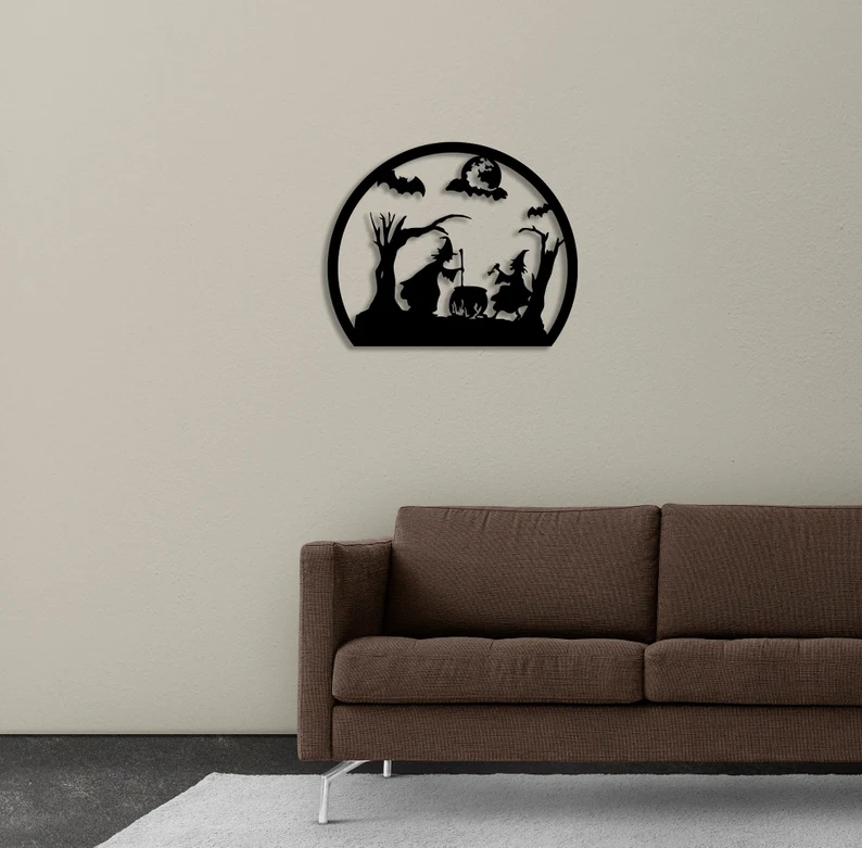 Cadılar Bayramı Dekorasyonu, Cadı Dekoru, Ürkütücü Dekor, Metal Duvar Askısı, Metal Duvar Sanatı, Cadılar Bayramı Cadısı