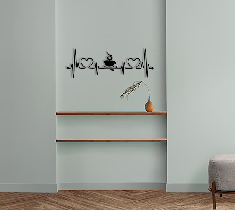 Kahve Barı Metal Duvar Sanatı, Mutfak Duvar Sanatı, Kahve Dükkanı Dekoru, Modern Mutfak Dekoru, Kahve Severlere Hediye, Bir Fincan Kahve Mutfak Dekoru