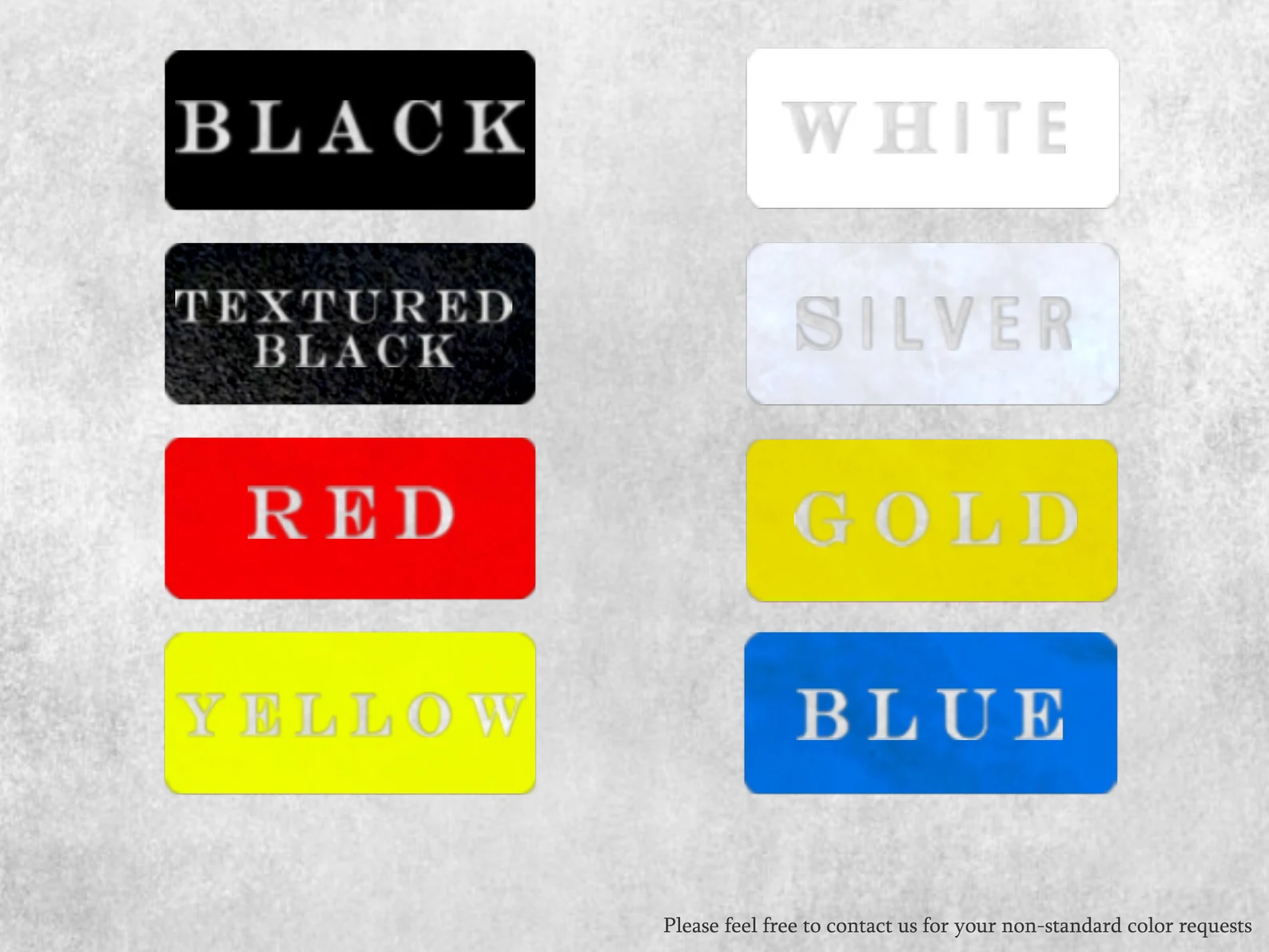 Siyah, Kırmızı, Sarı, Beyaz, Gümüş, Altın, Mavi
