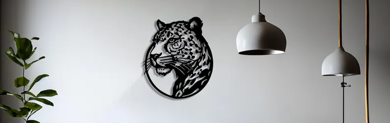 Siyah Leopar Başlı Metal Duvar Sanatı