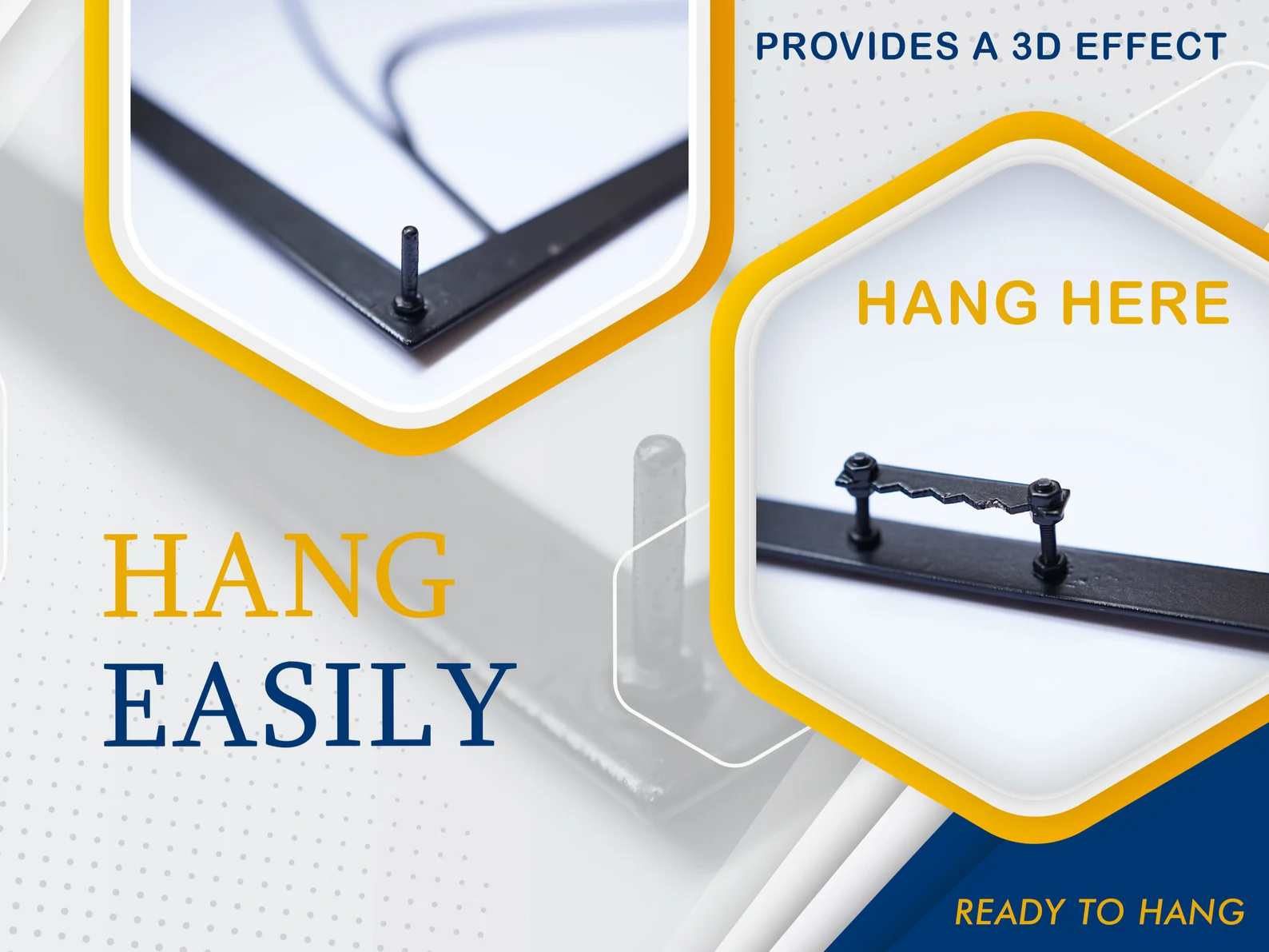 ● 3D GÖLGE ETKİSİ - Testere dişi askı ve ürünlerin tasarımı, ek derinlik, boyut ve gölge için duvar sanatını duvardan 2 cm (yaklaşık 1 inç) uzakta tutar.